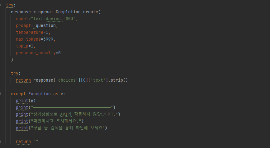 CHAT GPT는 간결하게 되어 있어 바로 작동한다. 기술의 간편성은 외국을 아직 따라가지 못한다. 개발시 openai.api_key가 안된다는 메세지가 나와 해결에 살짝 짜증은 나더라. 해결법은 아래를 클릭하면 된다.